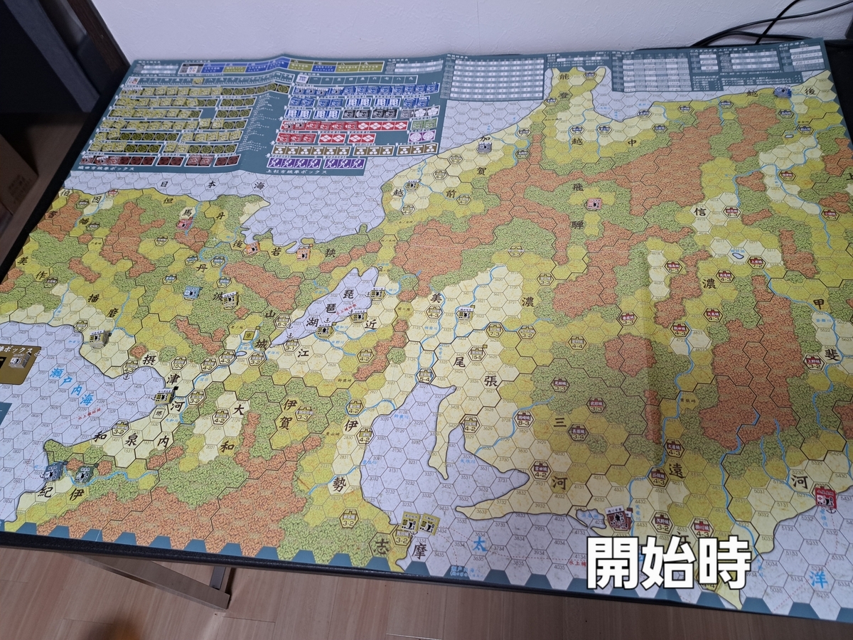 ・全15ターン。*1終了時点で上杉方が30VP取れば上杉の勝ち。あとは信長や謙信が討死したら相手の勝ち。VPは城の攻略や敵ユニットの除去でもらえる。上杉側のユニットが京にいるとかもVPになる。もちろん織田が城やユニットを除去するとVPがマイナスされていく。