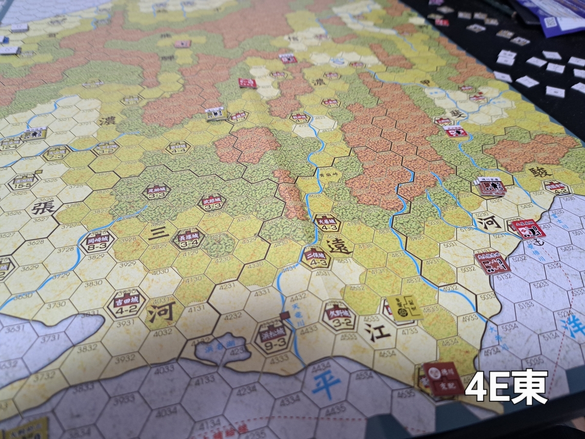 中国方面は羽柴秀吉(3-5)を中心に空城を奪いつつ、毛利の畿内/中国の兵力配分を見て立ち回る。