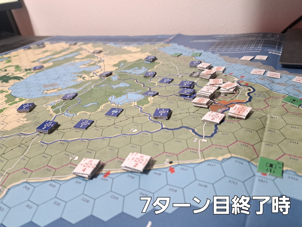 3ターン目は大量の増援が進出してくるはずだったが、日本軍の航空阻止で3ユニット6戦力が壊滅させられた。